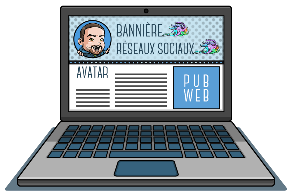 Je conçois toutes sortes de visuels à destination du web : images pour habiller votre site internet, bannière web de publicité, bannière pour réseaux sociaux, avatar, mise en forme de newsletter…